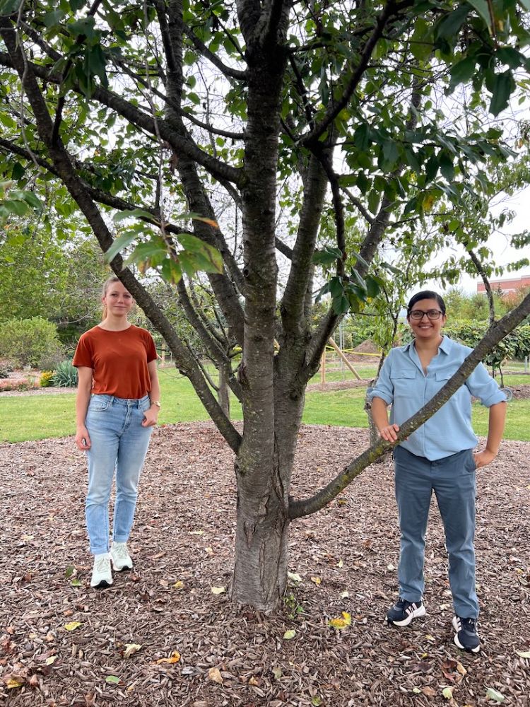 One highlight of Jessica’s visit was uncovering the story of  The mystery of the Michigan State Kiwi . MSU hardy kiwiberry originally first being spotted near campus tennis court is now planted in the Beal Botanical Garden. The serendipity was striking: she came to Michigan to learn how to screen kiwifruit roots for root rot disease, only to find a hardy kiwi plant thriving on campus. Motivated by that story, Pratima and Jessica walked to the Beal Botanical Garden to find it. As Pratima remarked, “It took us a while to find it just like in research, where persistence is often key to uncovering answers to our questions.”