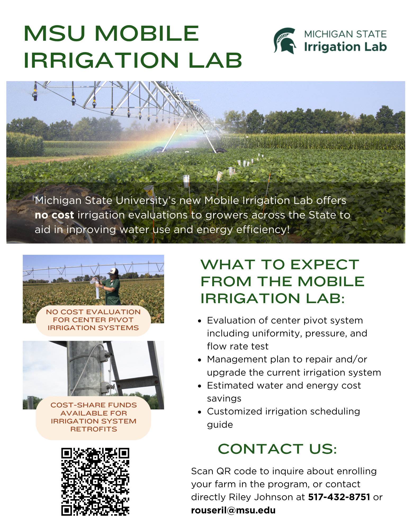Interested in having the Mobile Irrigation Lab visit your farm? Complete this form to request a site evaluation or contact Riley Johnson at rouseril@msu.edu for more information.