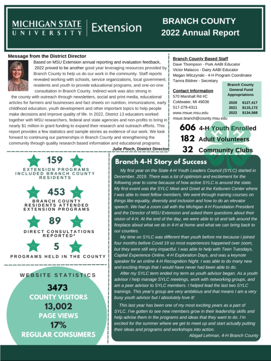 Michigan State University Extension continues to serve the residents of Branch County through the educational process that applies knowledge to critical issues, needs and opportunities.